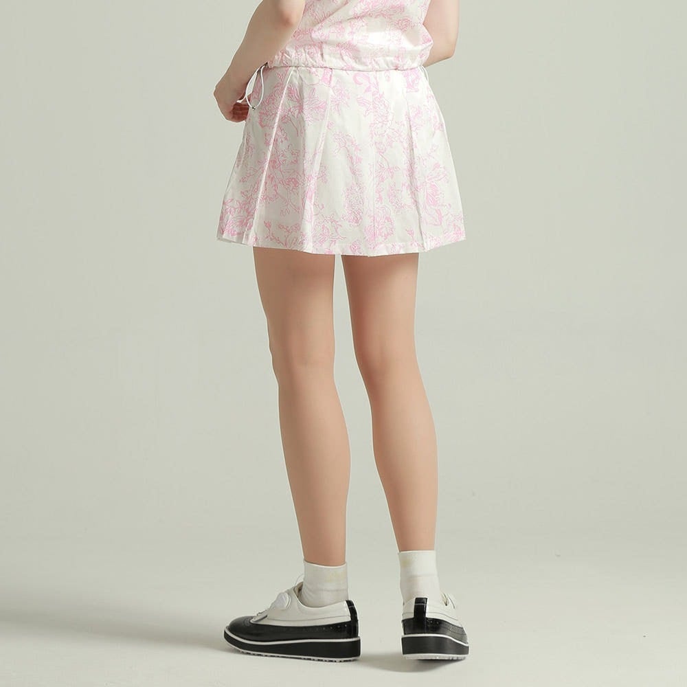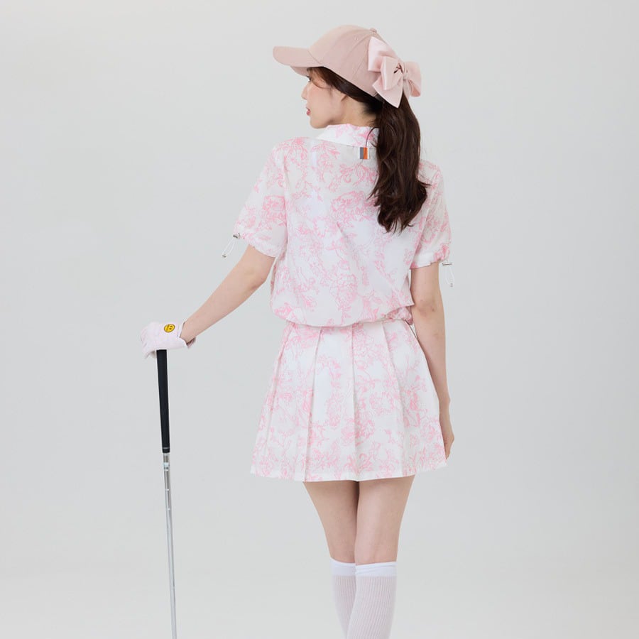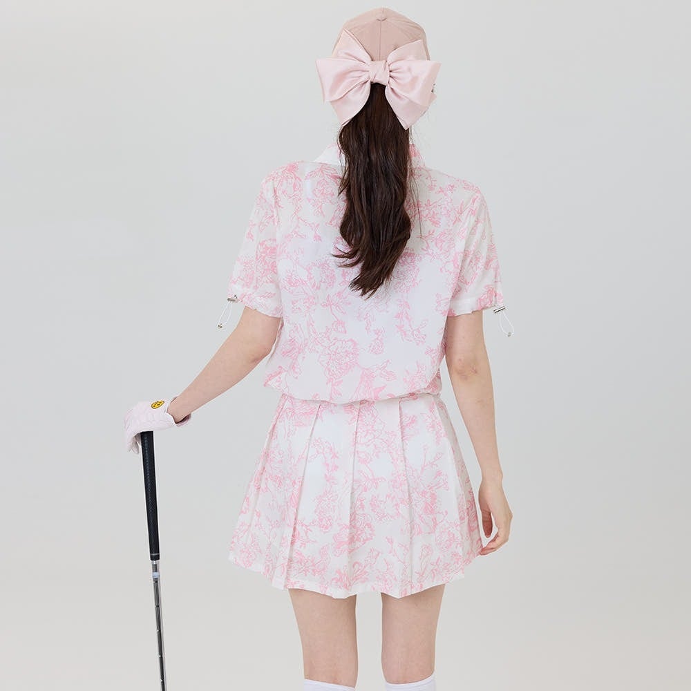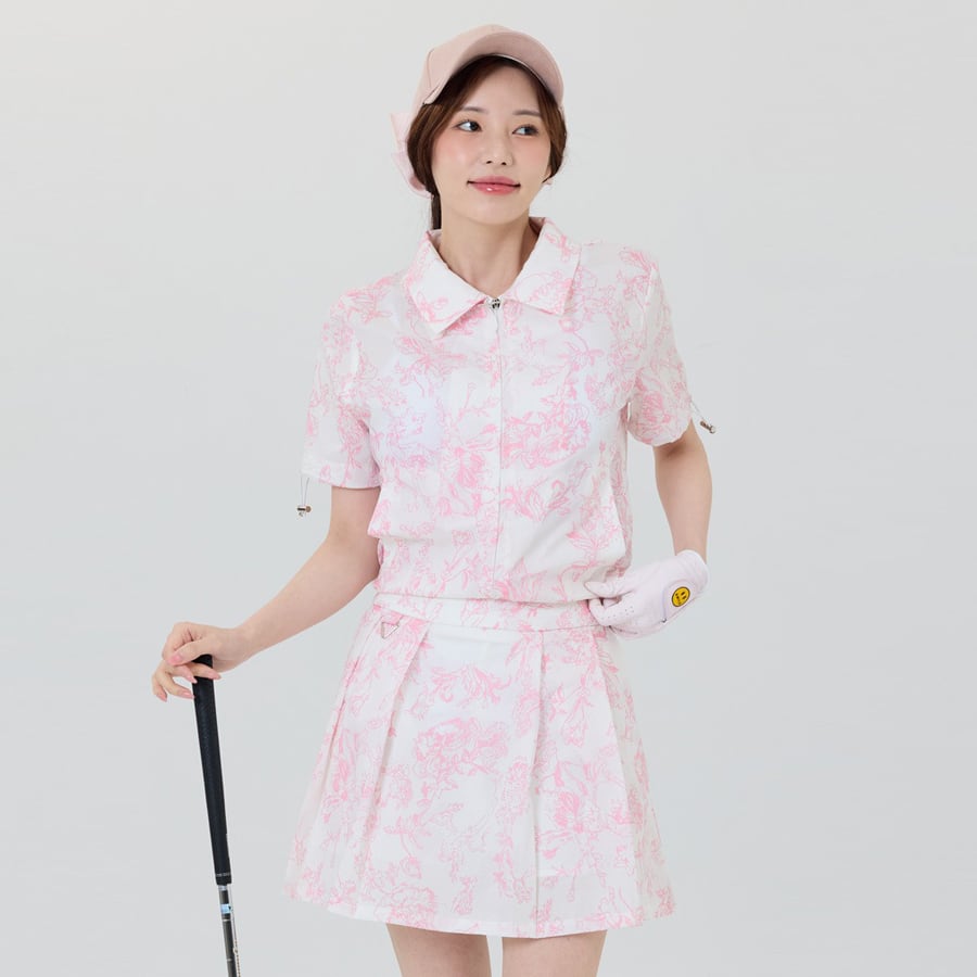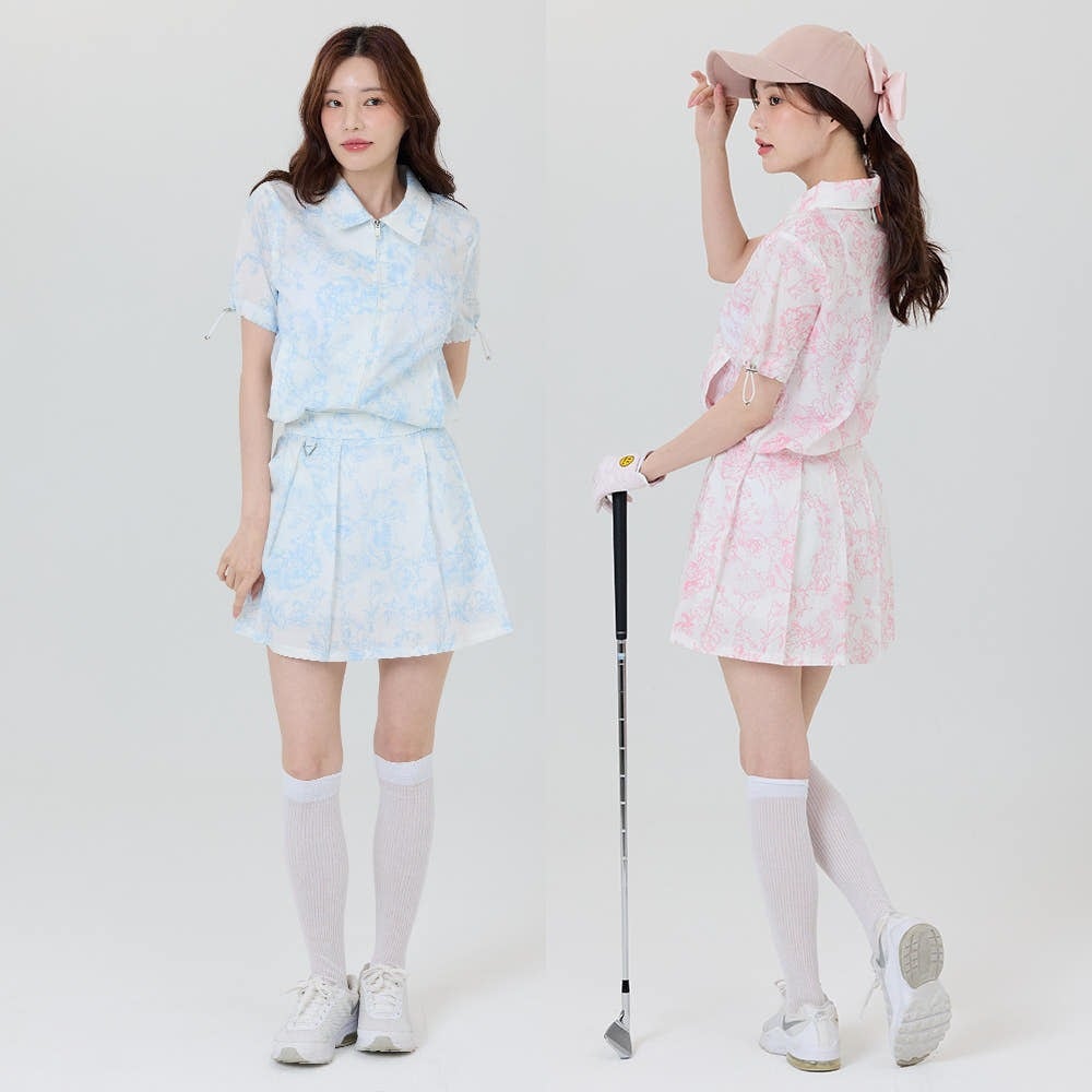 【セール】フラワープリントドロストSET UP(ジップポロシャツ/プリーツスカート)
