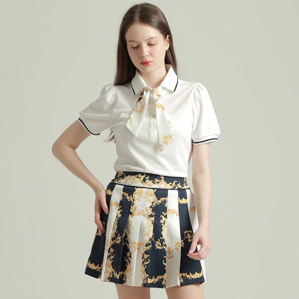 【セール】バロックプリントスカーフ付きSET UP (ポロシャツ/プリーツスカート)