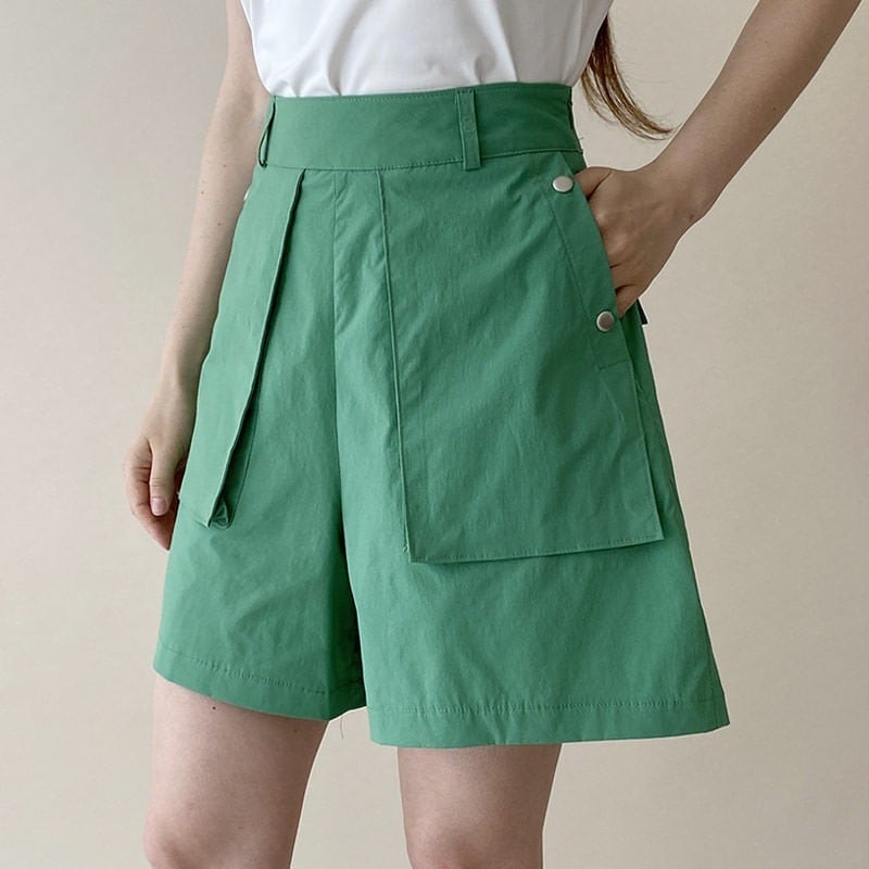 シルエット:ハイウエスト&ややワイドなシルエットで脚をすっきり見せ。