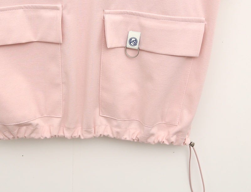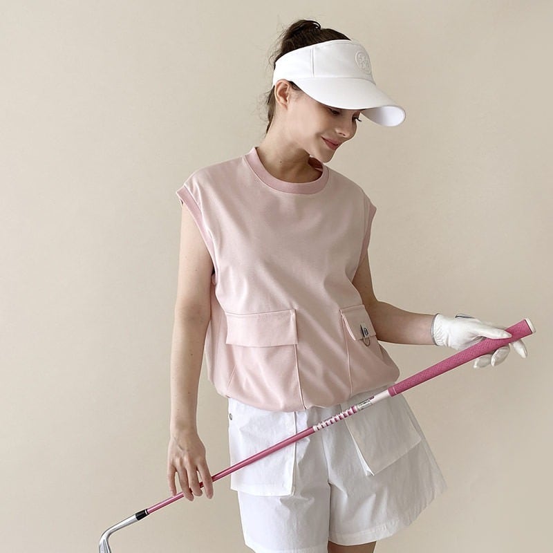 大きめのフロントポケットがアクセントになったノースリーブベスト。