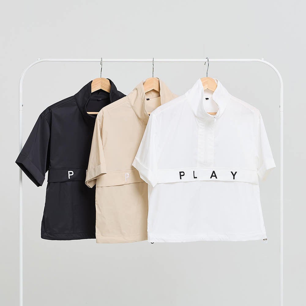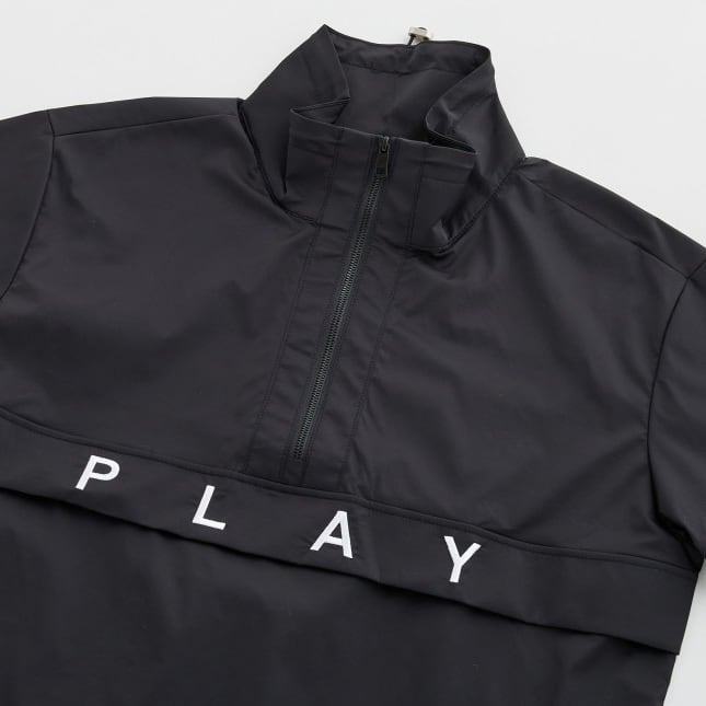 胸元の「PLAY」ロゴがアクセントになったハーフジップ仕様のウィンドブレーカー。