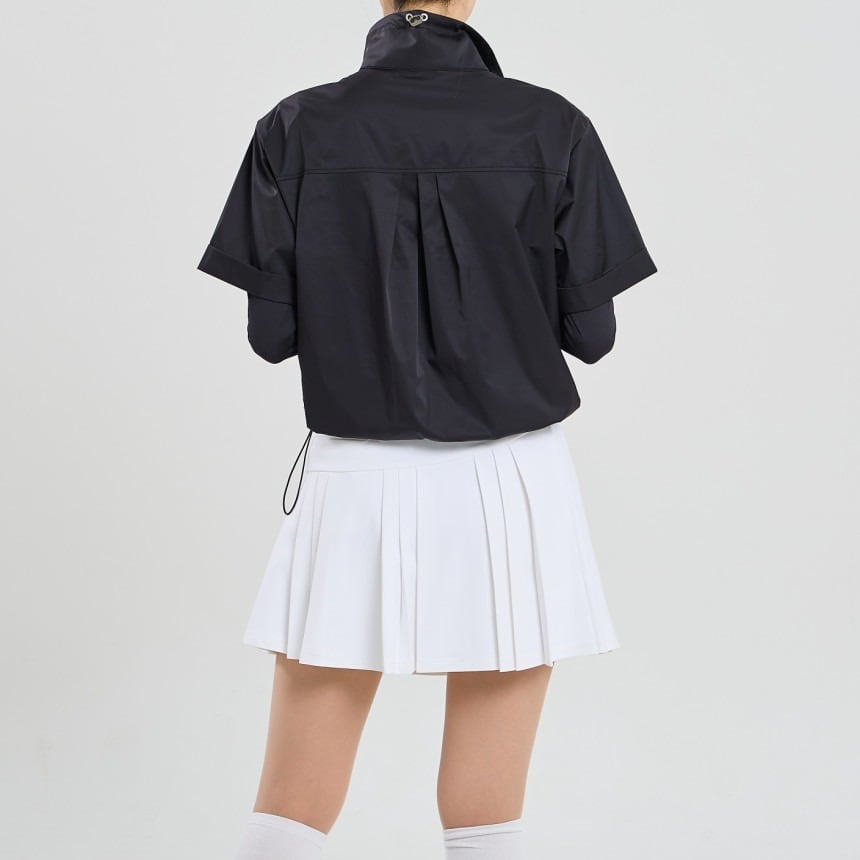 ハイネックデザインで首元をしっかり守り、ジップで体温調整も可能です。