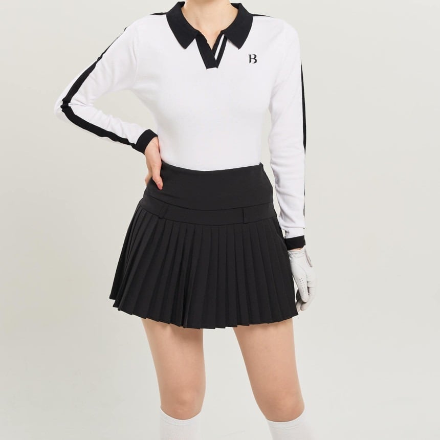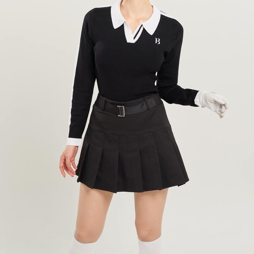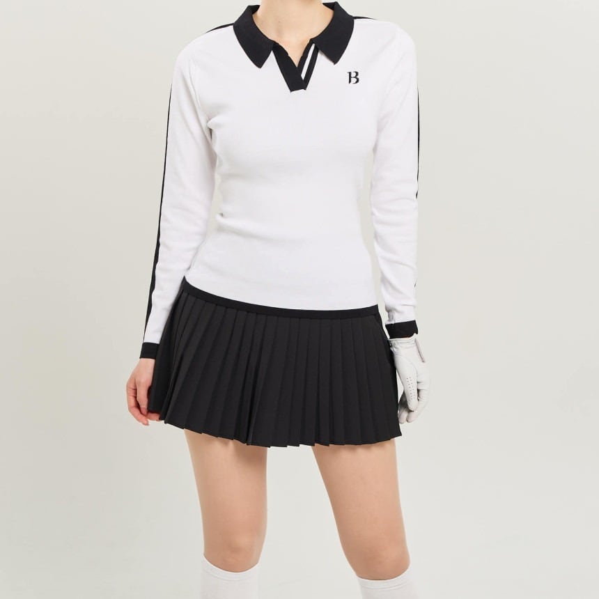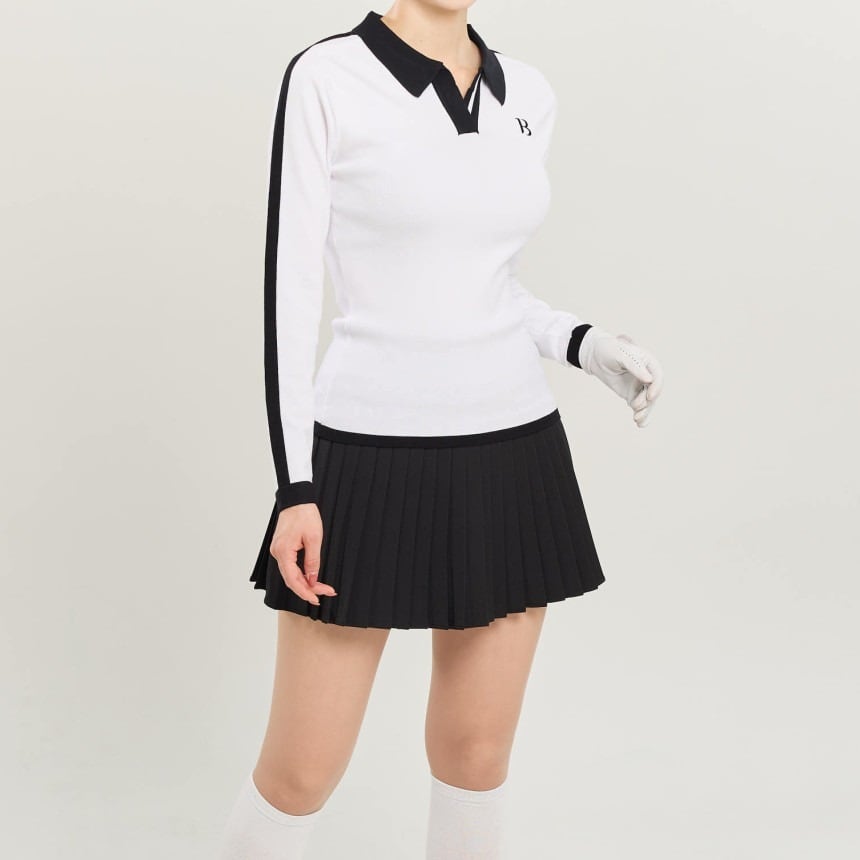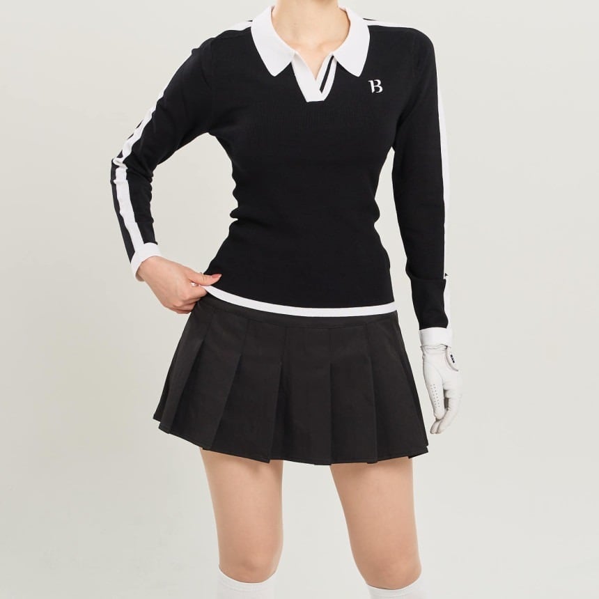 伸縮性のあるニット素材で、スイングなどの動きにもスムーズに対応。