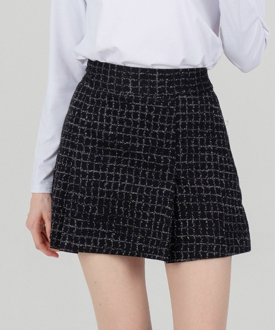 上品なパール入りツイード素材で、カジュアルながらも高級感のあるセットアップです。