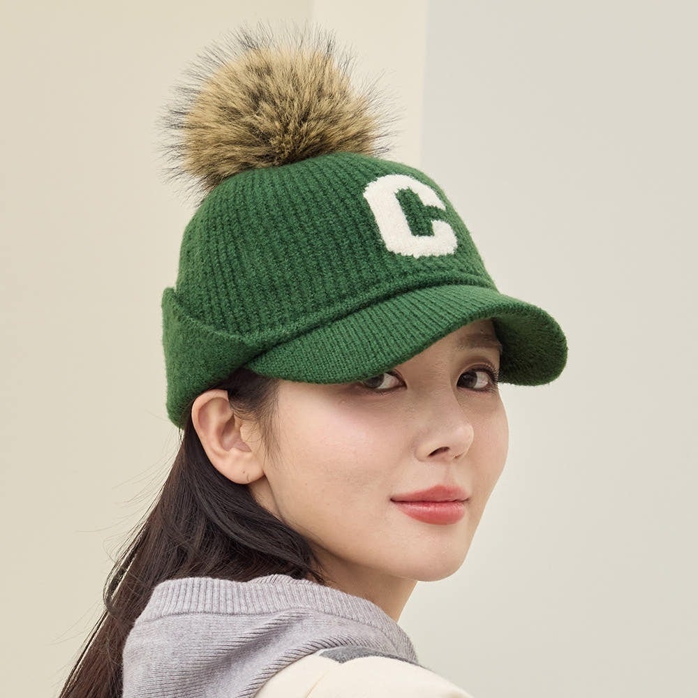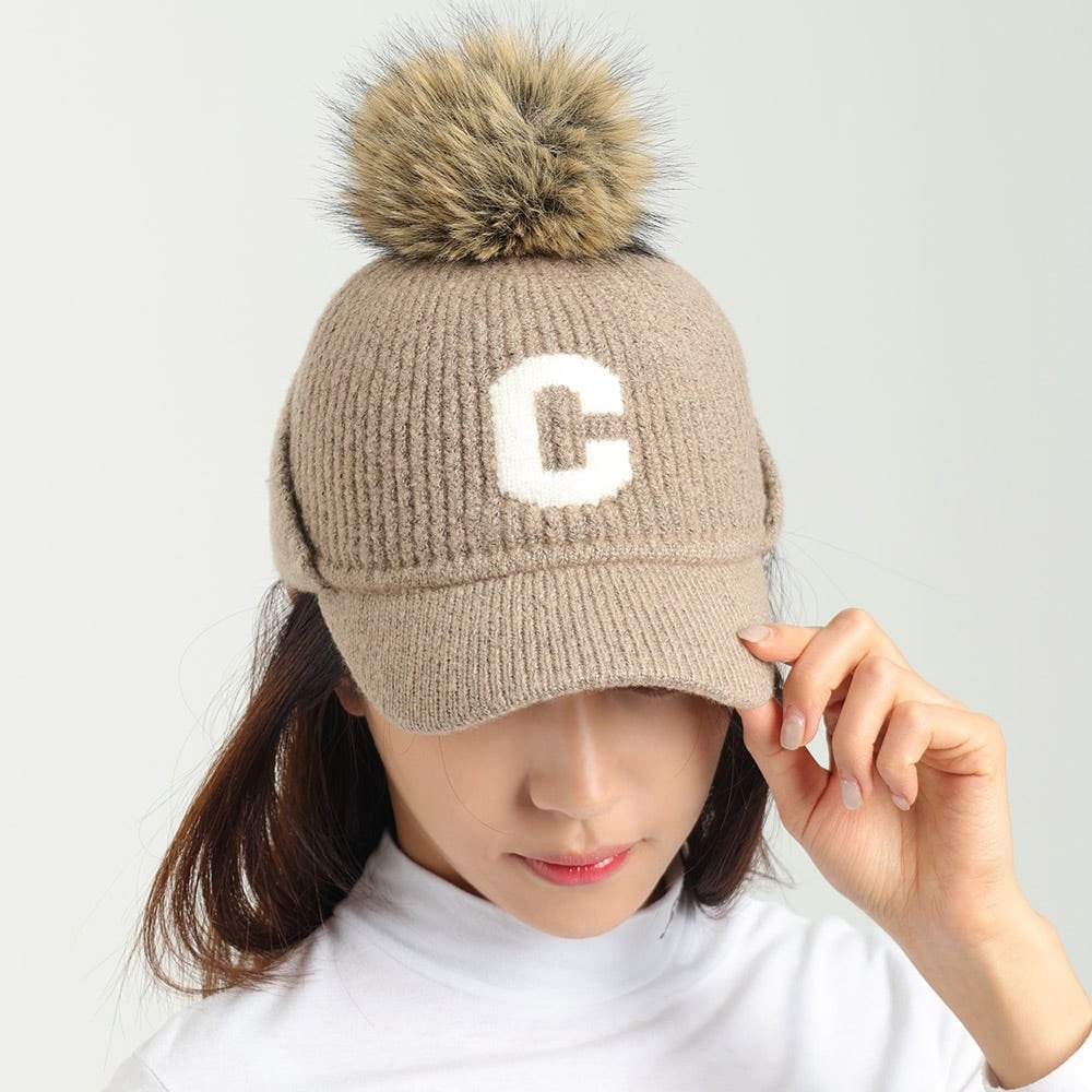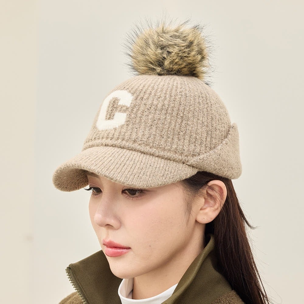 ふわもこCロゴボンボンキャップ (耳当て付き)