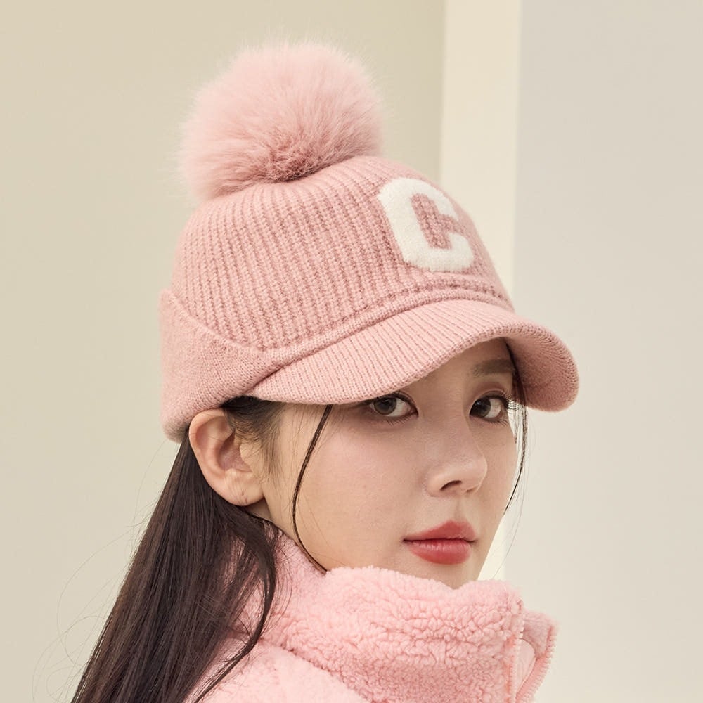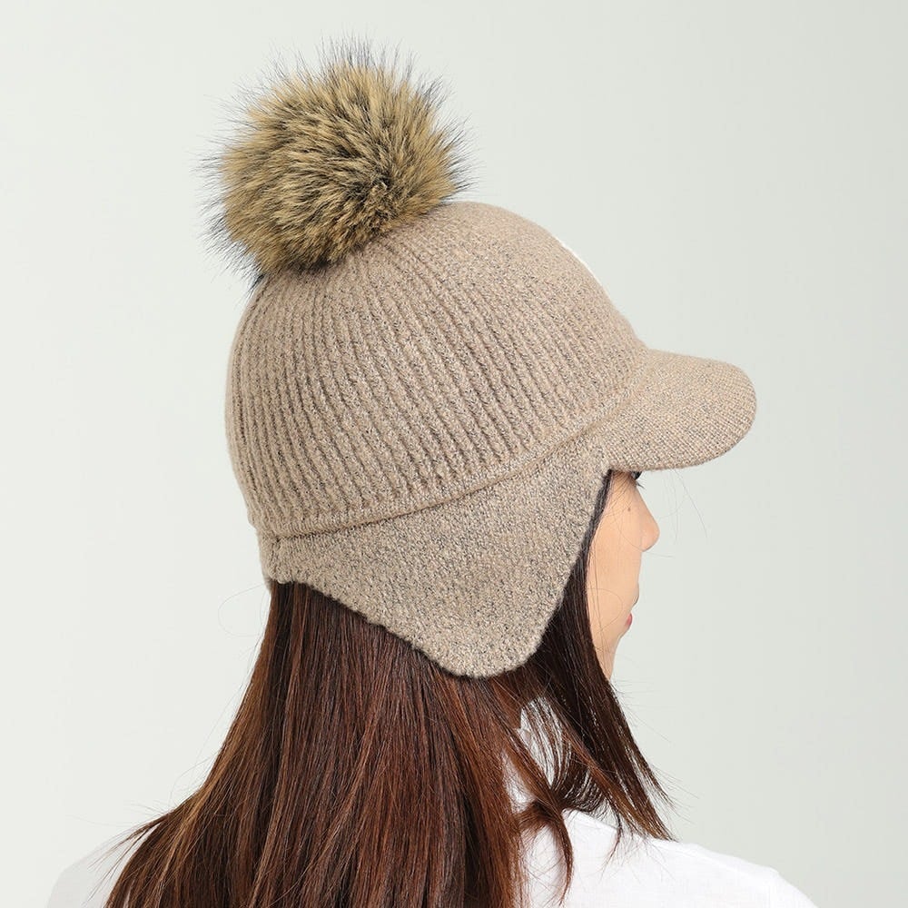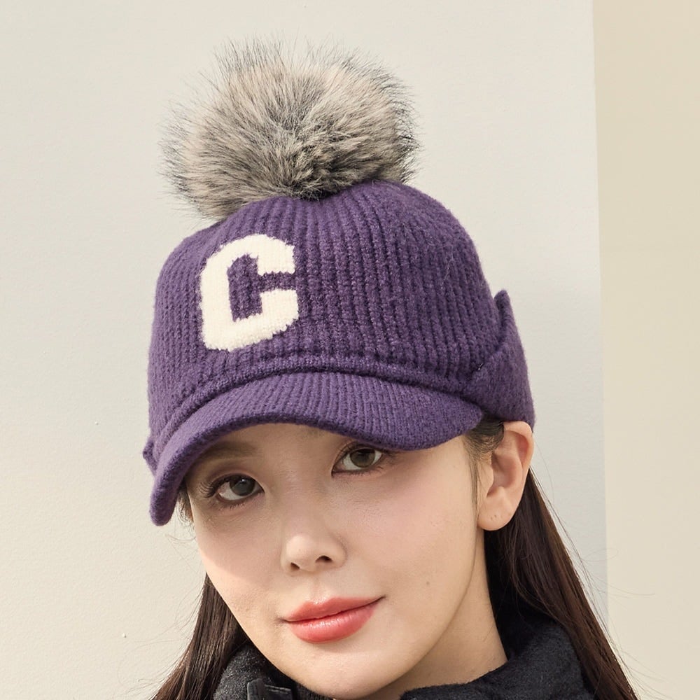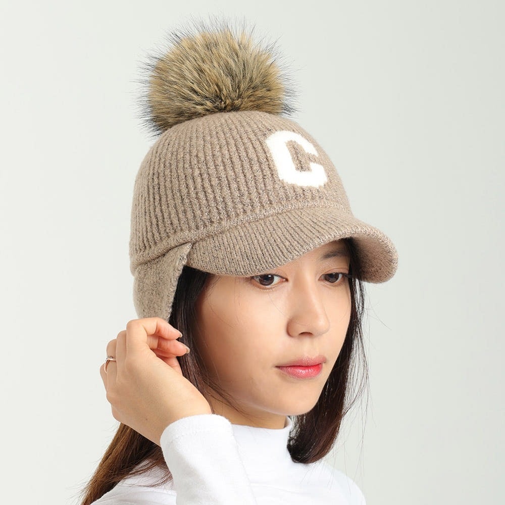 ふわもこCロゴボンボンキャップ (耳当て付き)