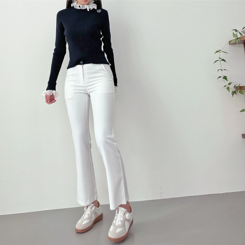 スリムフィットで自然なフレアシルエット。
