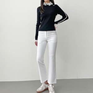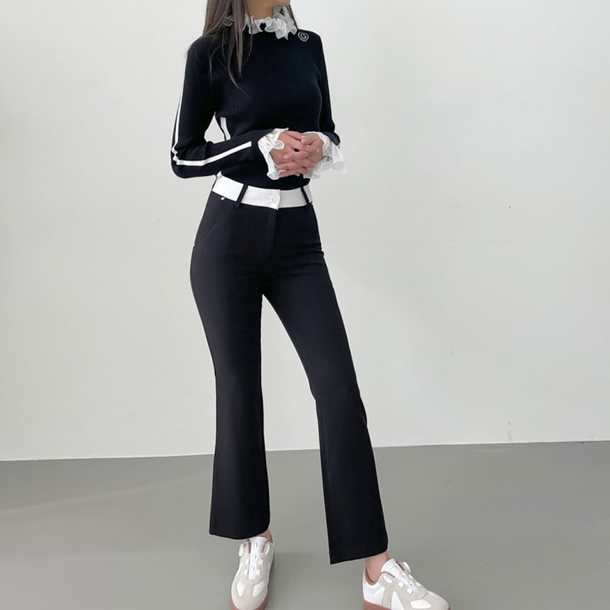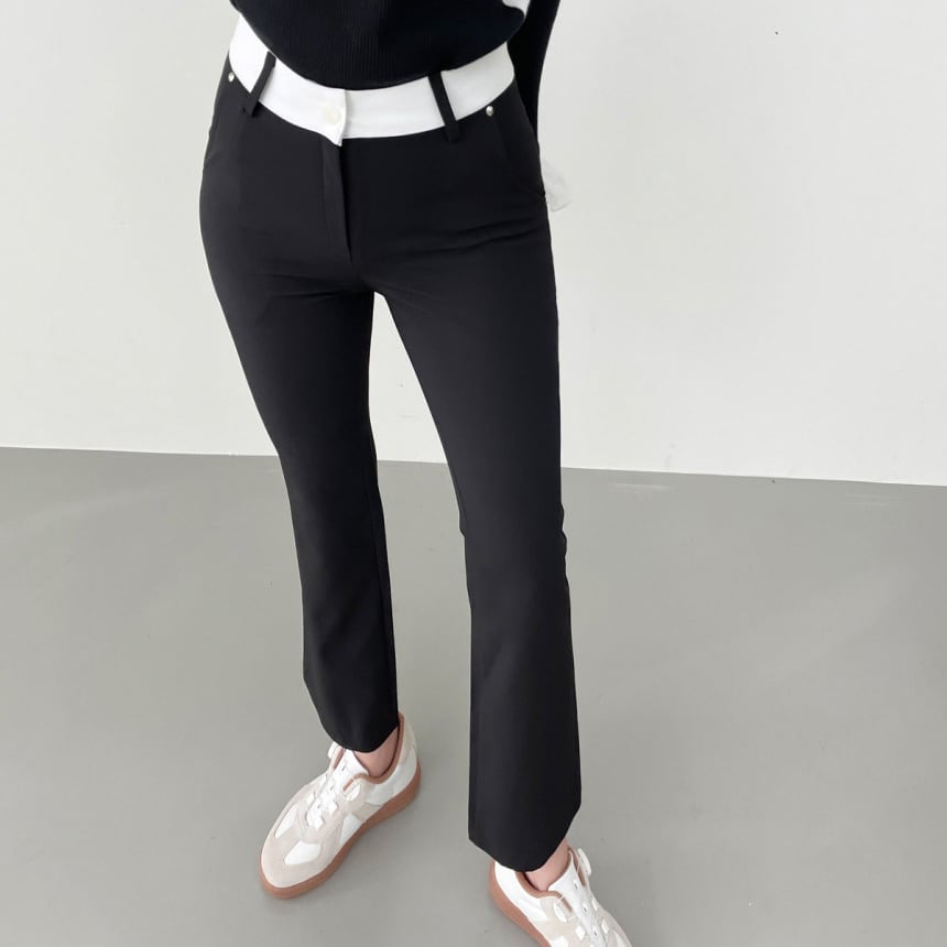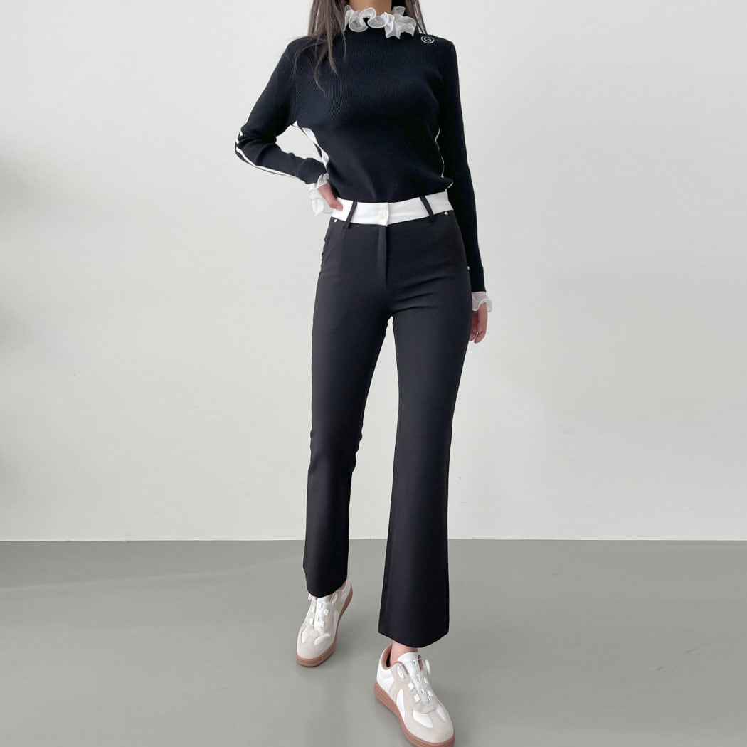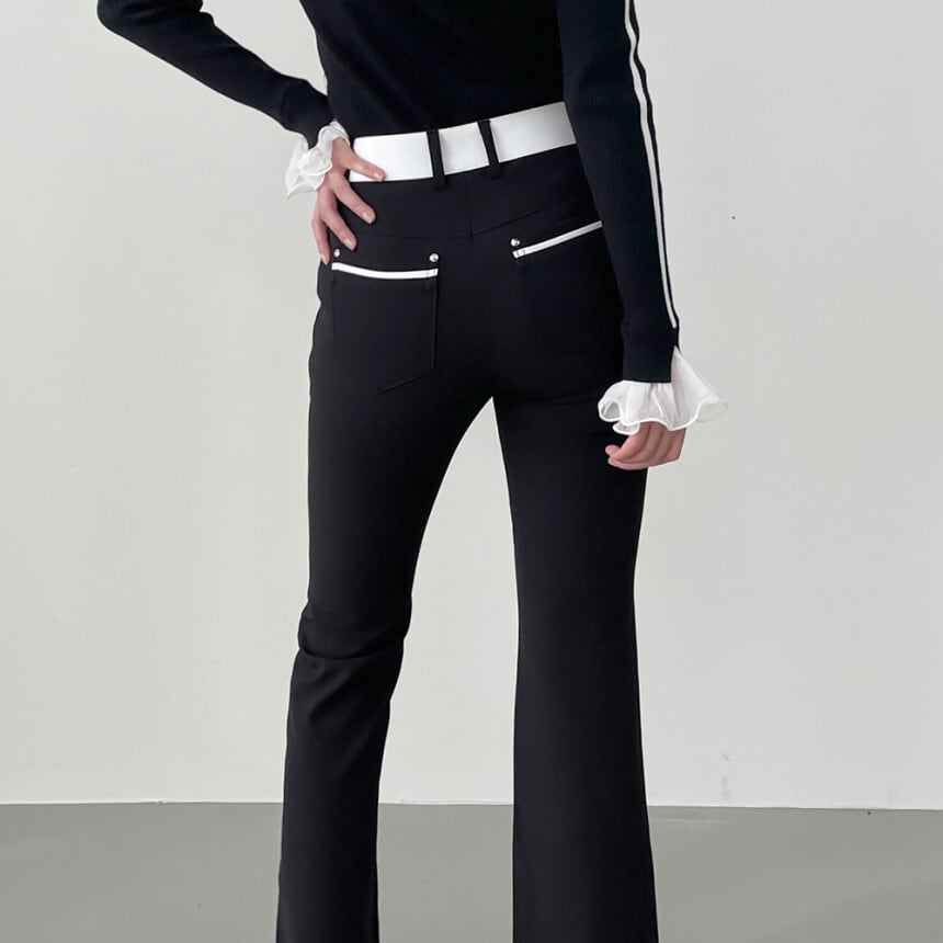 バイカラーストレッチフレアパンツ (大きいサイズあり)