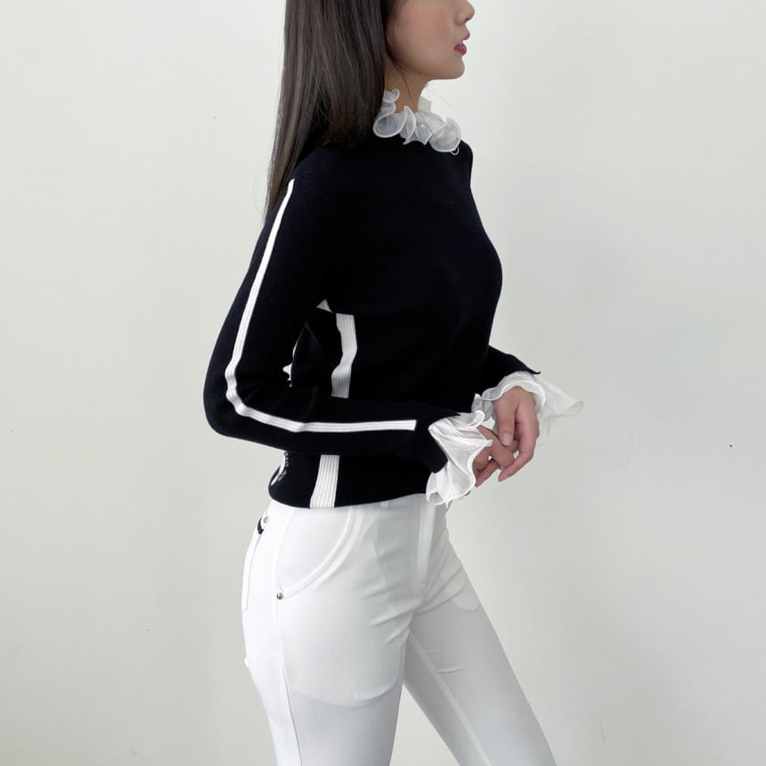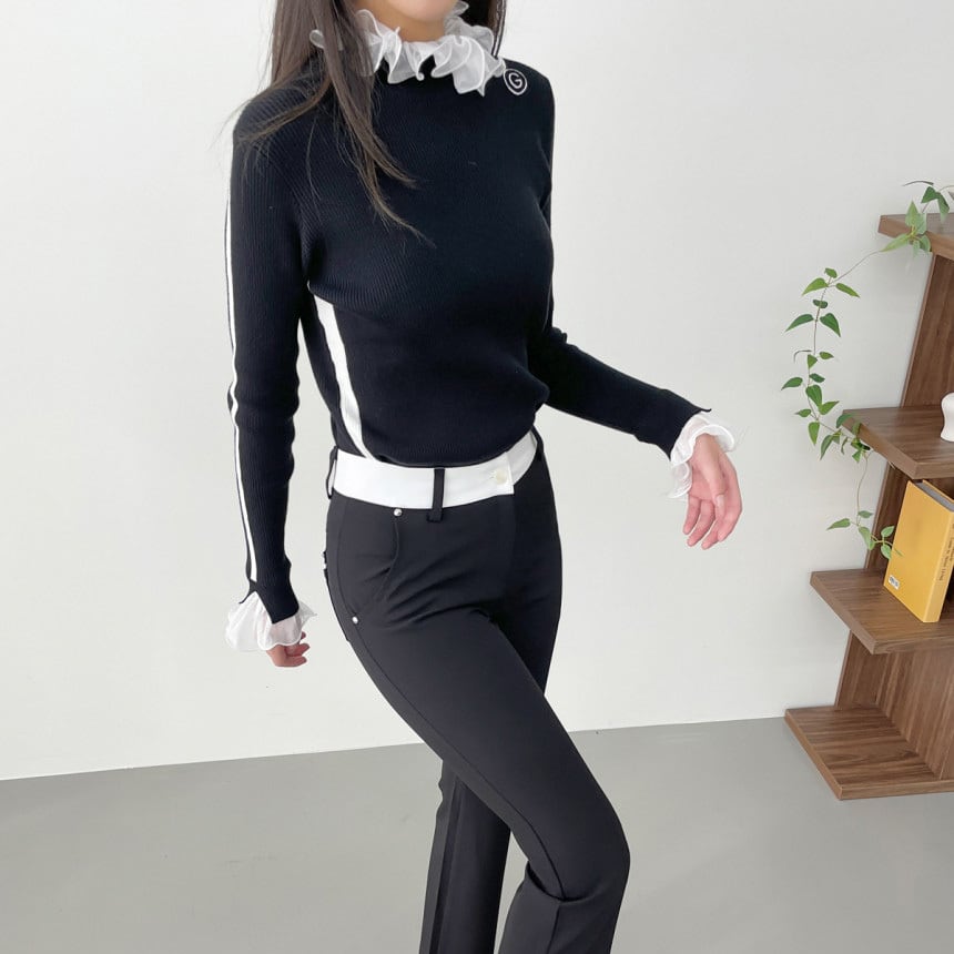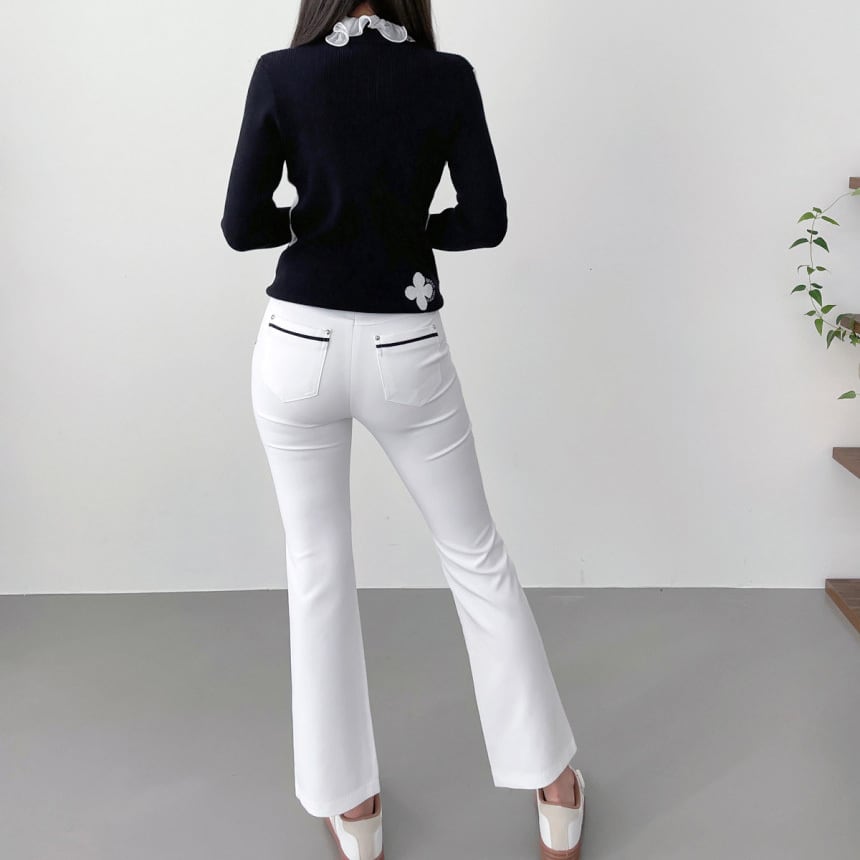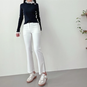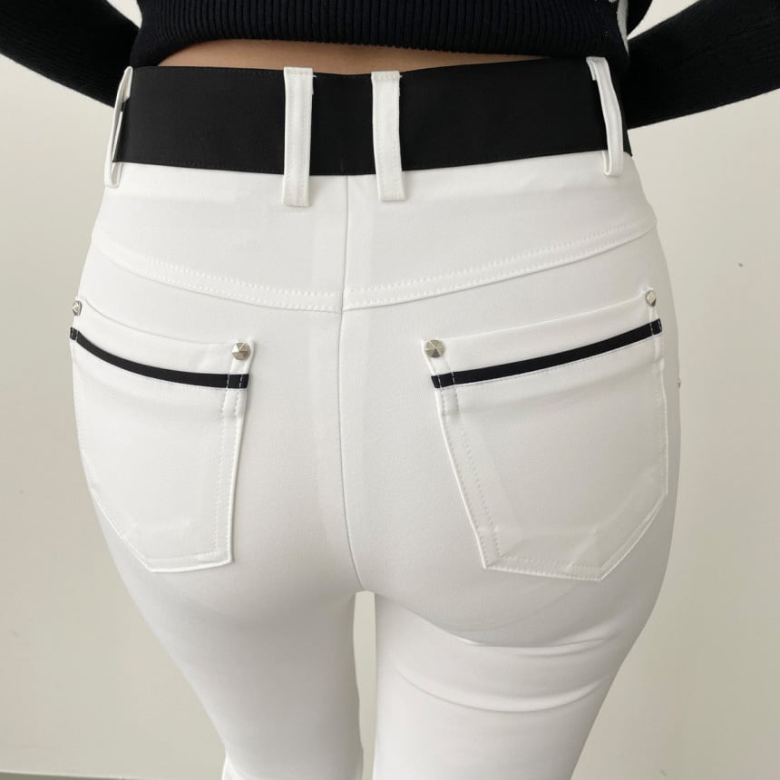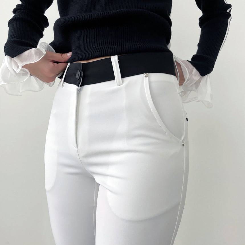 バイカラーストレッチフレアパンツ (大きいサイズあり)