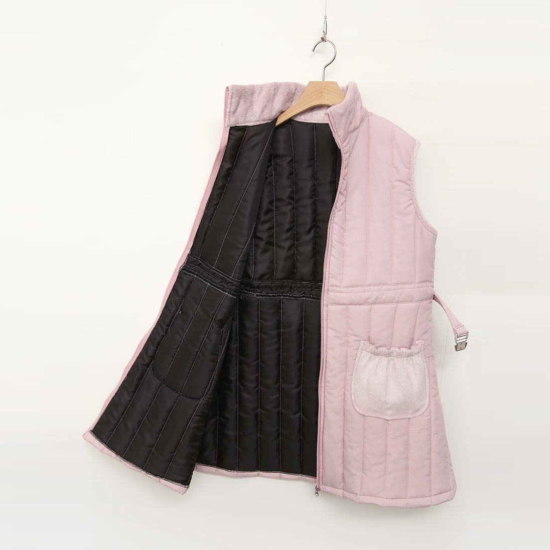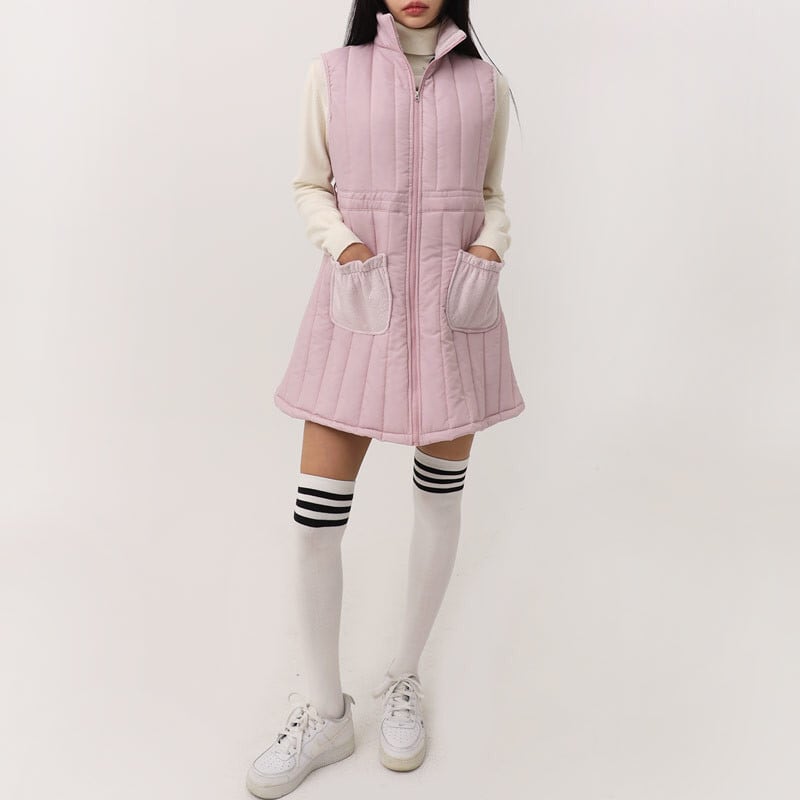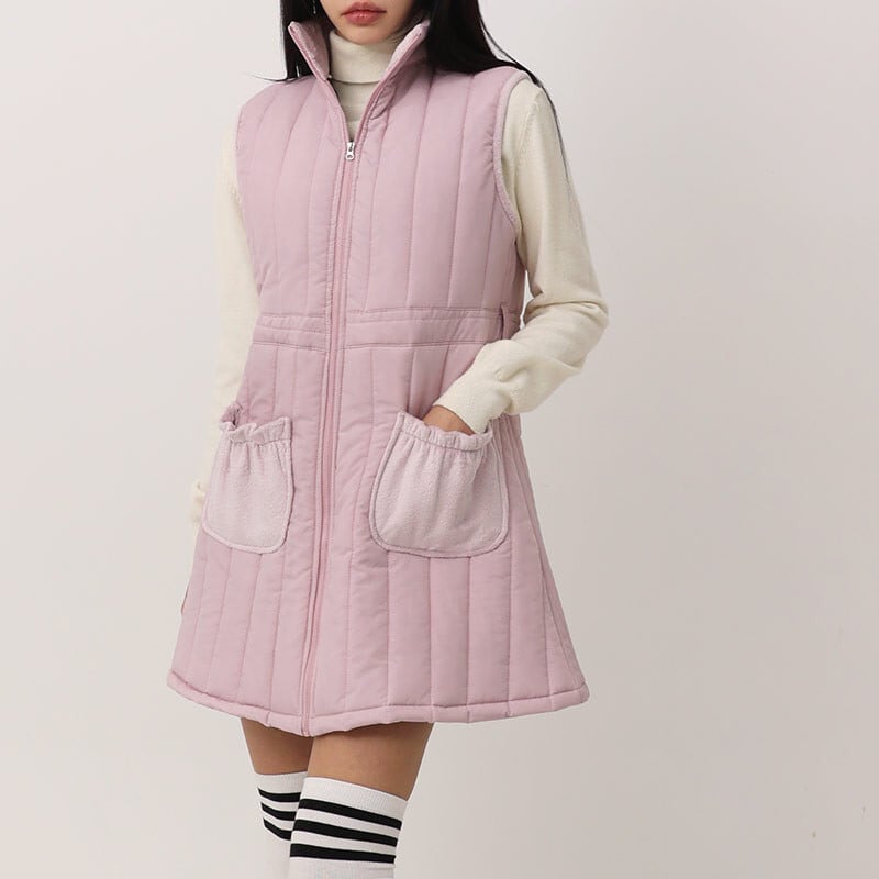 縦ラインのキルティングデザインがすっきりとしたシルエットを演出し、スタイルアップ効果も◎。