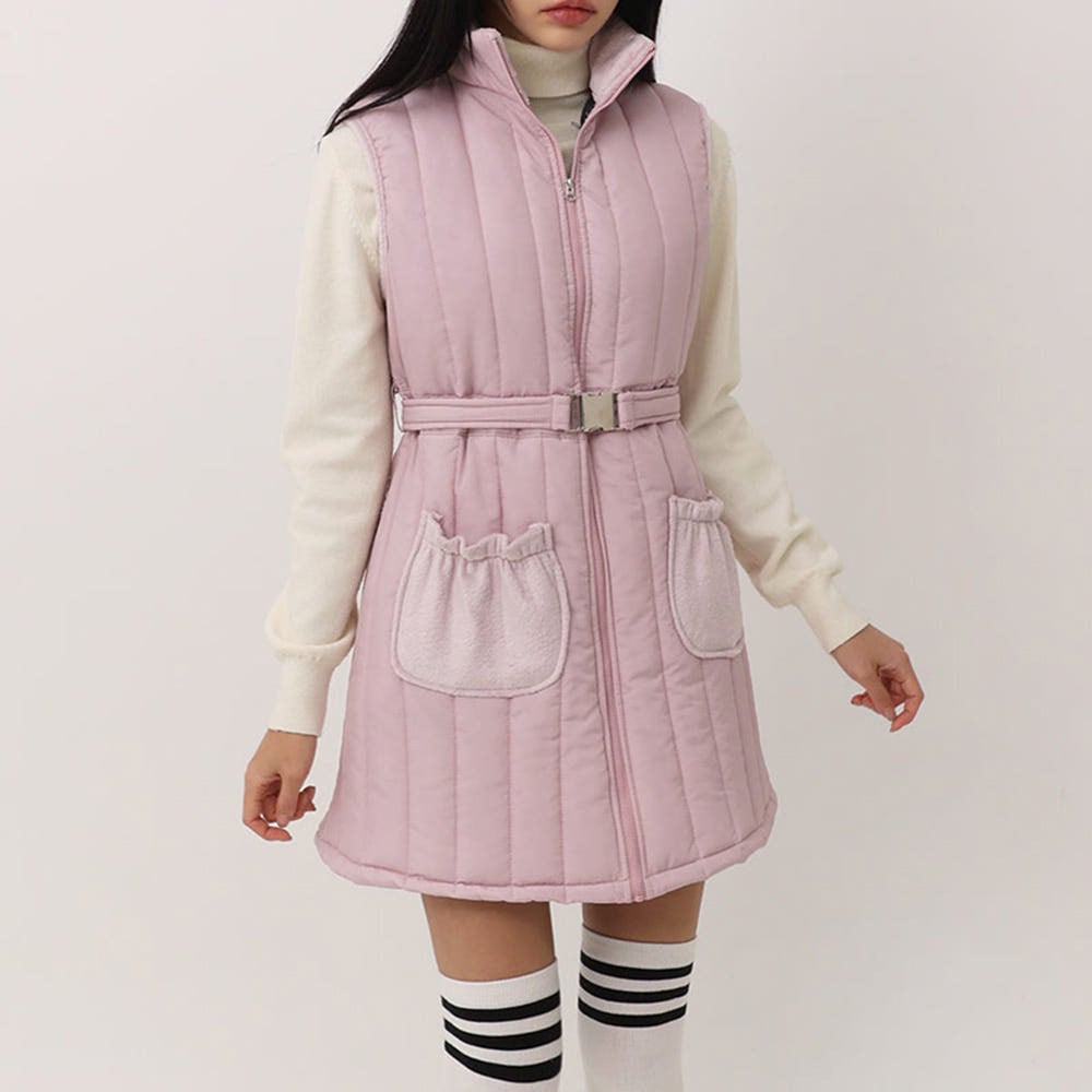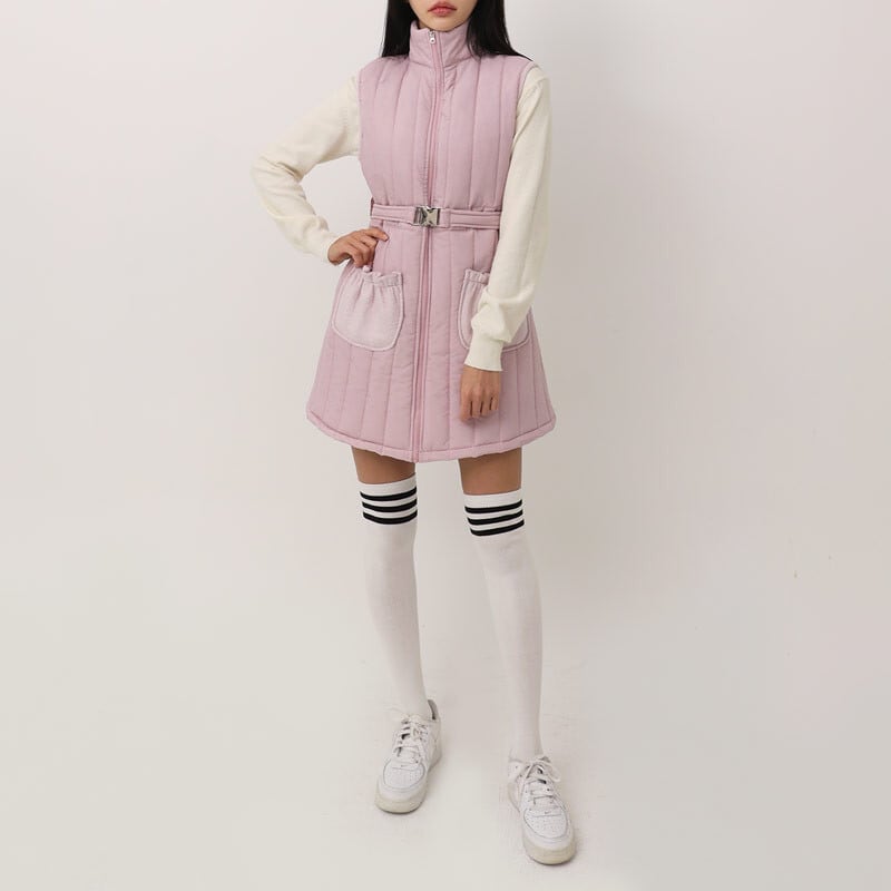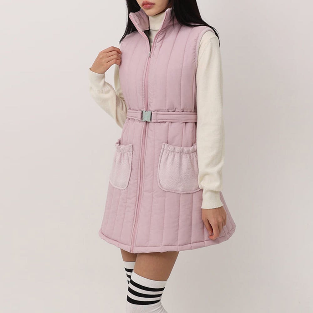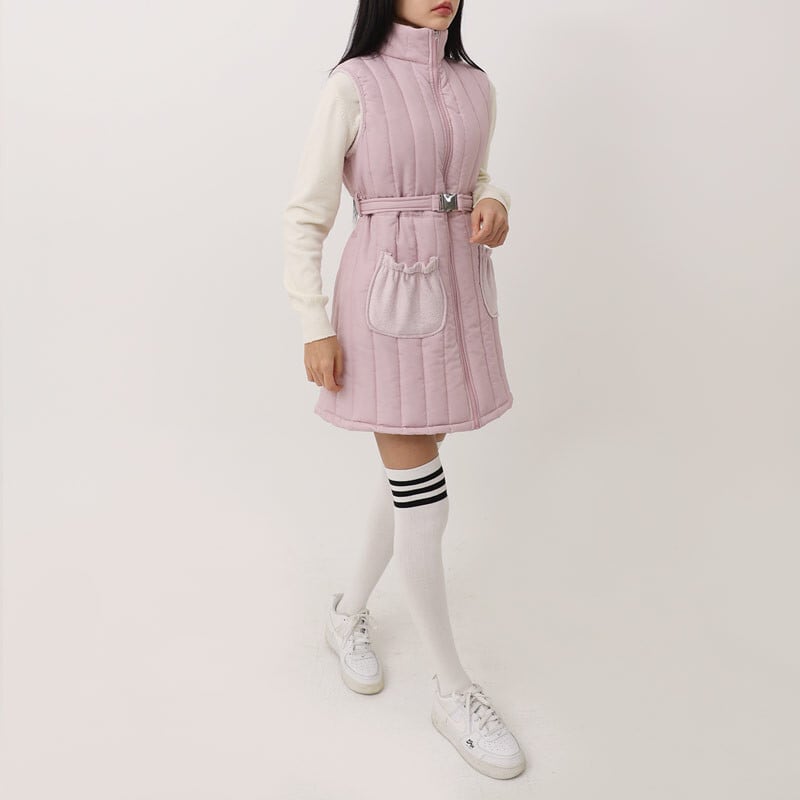 ウエストベルト付き 中綿キルティングゴルフワンピース