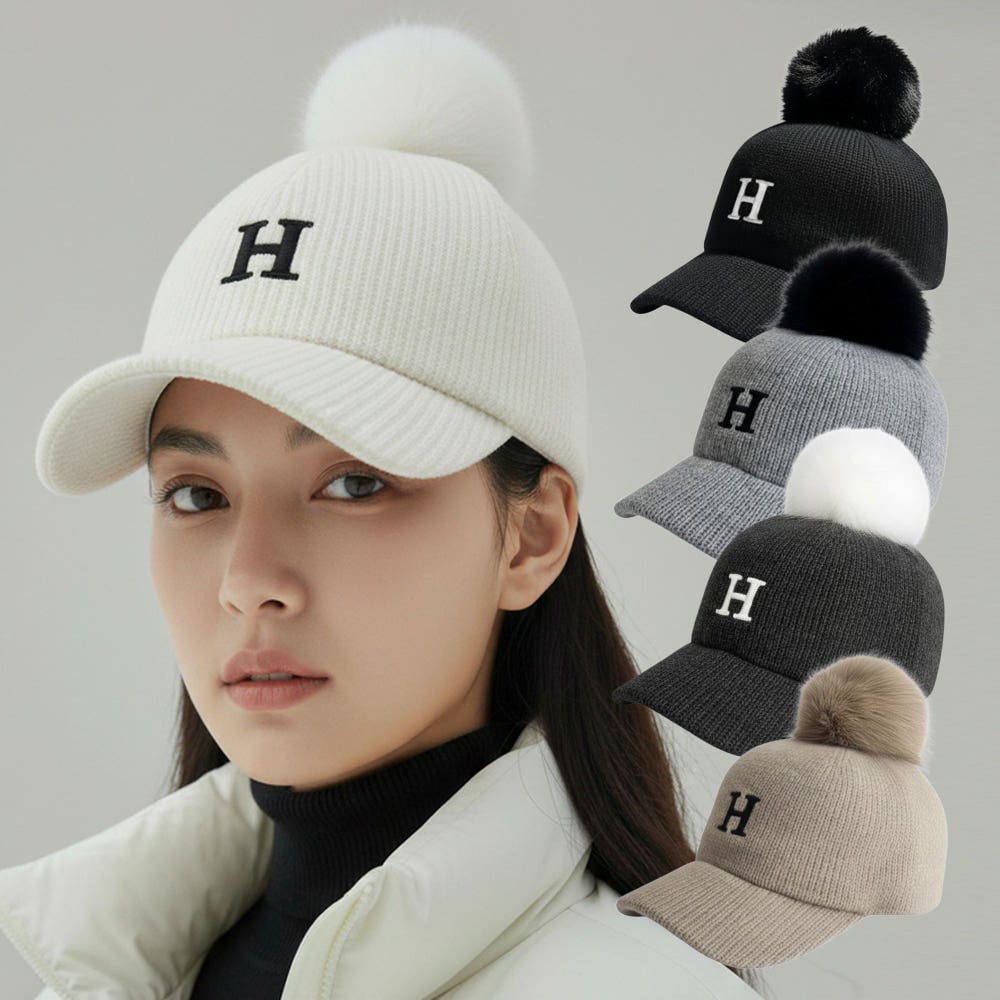 取り外し可能なポンポン: トップのフォックスファーはスナップボタンで簡単に付け外しが可能。冬はファー付きで華やかに、春先や秋口にはシンプルなつば付きニット帽として、ロングシーズン活躍します。