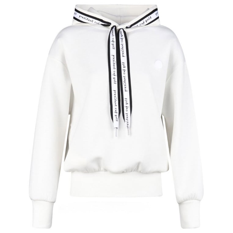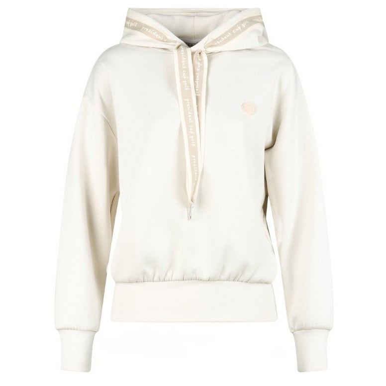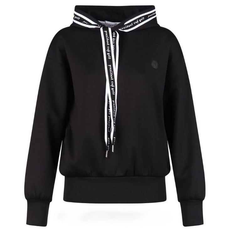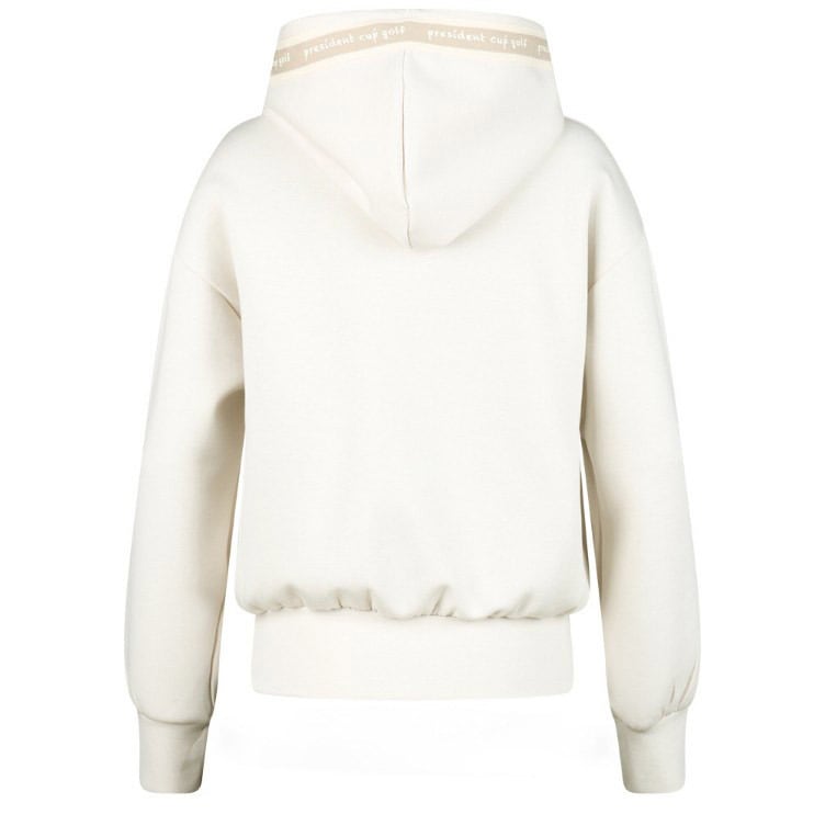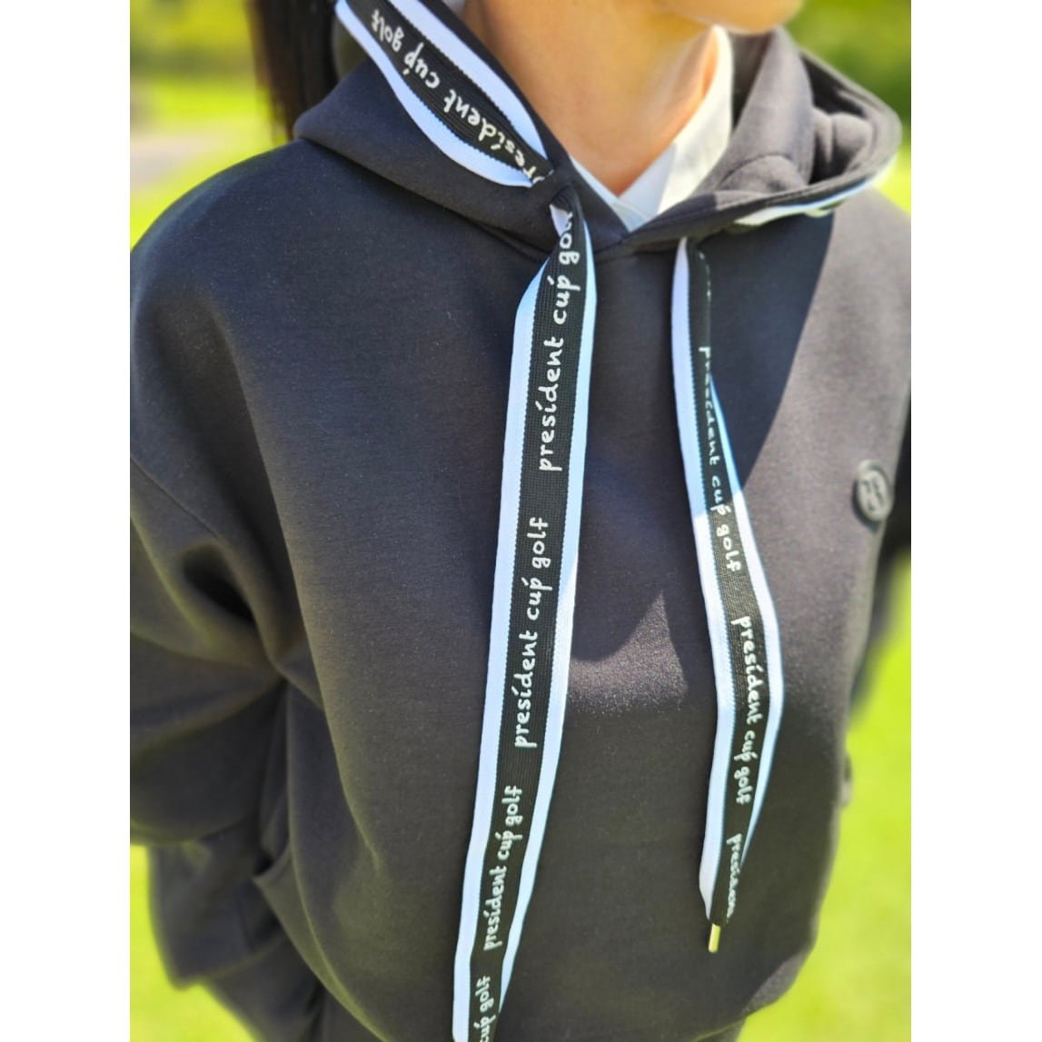 本製品は、フード周りから流れる印象的なレタリングリボンが、スポーティな中に洗練された気品を添えるロゴフーディーです。
