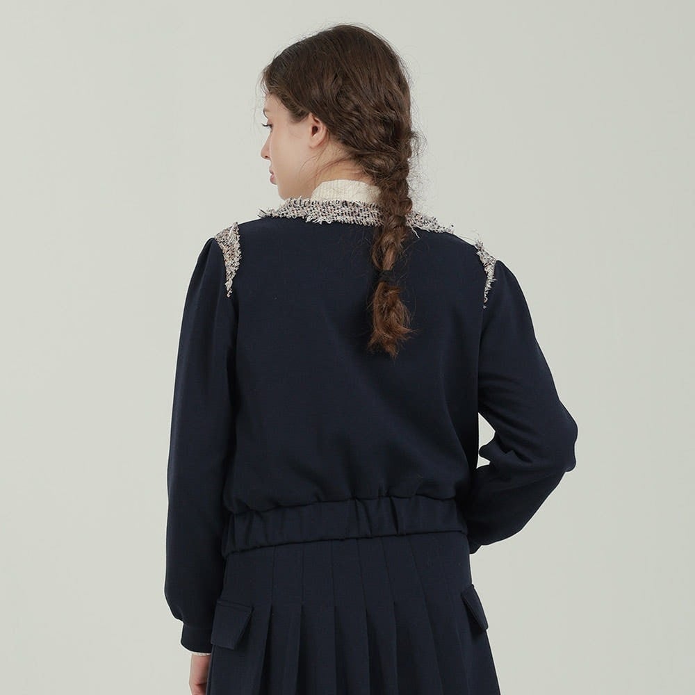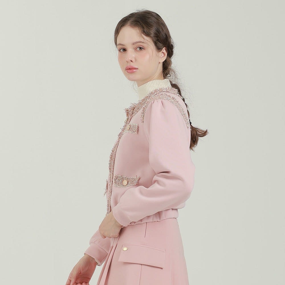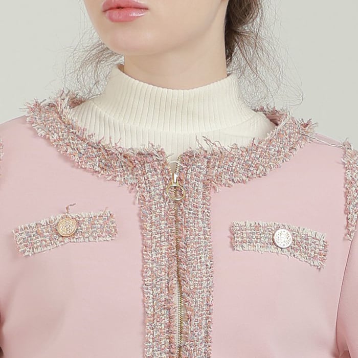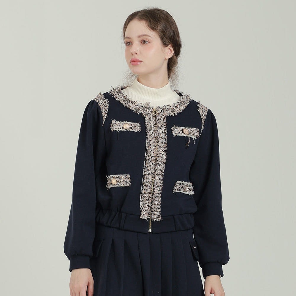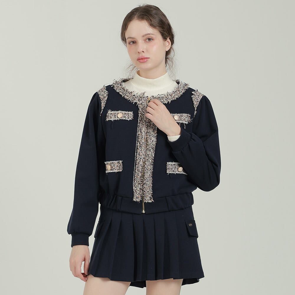 ツイードトリムノーカラーブルゾン&プリーツスカート SET UP