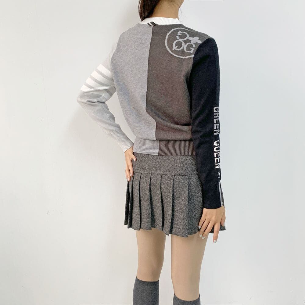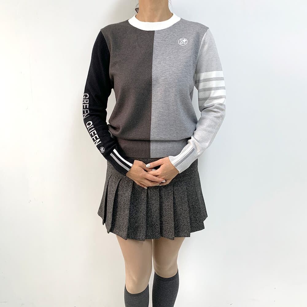 バイカラーカラーブロックニットプルオーバー