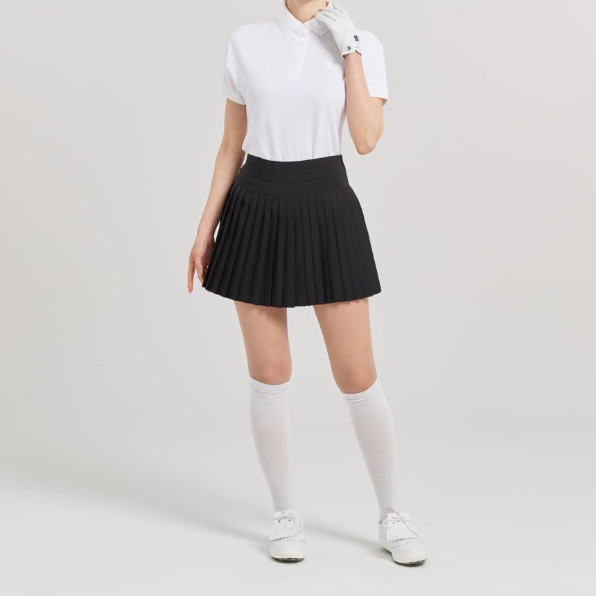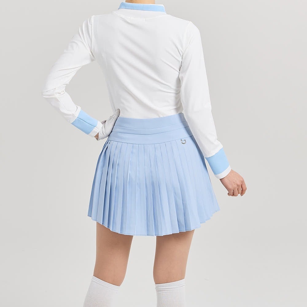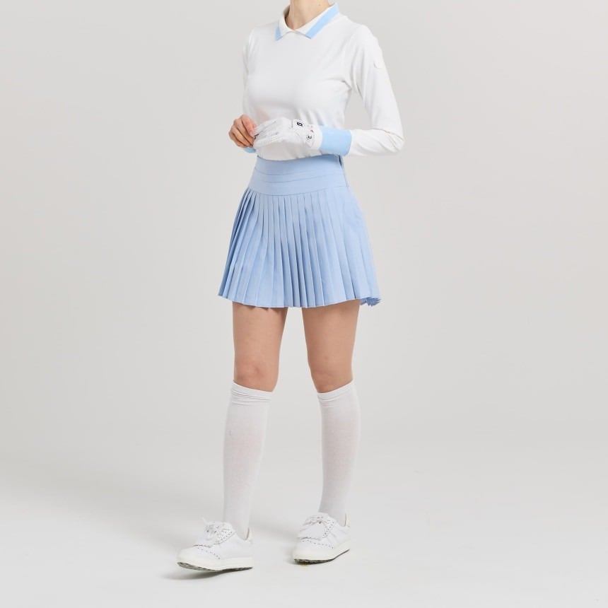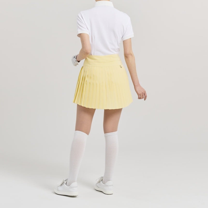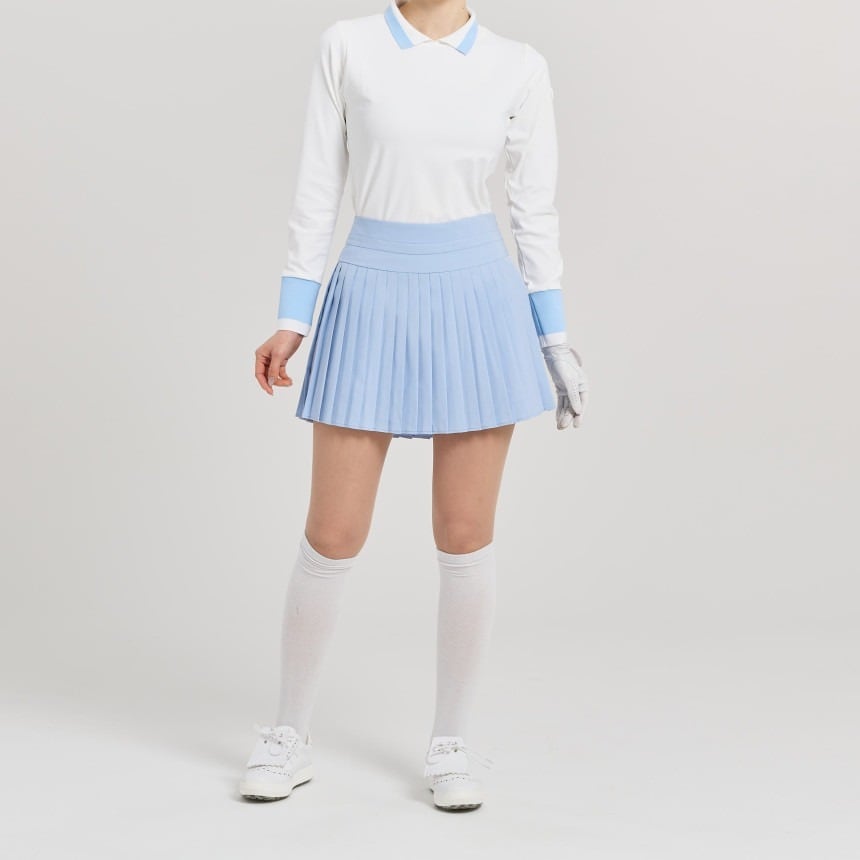 ハイウエスト 細プリーツ ストレッチ 美脚 パステルカラーゴルフスカート