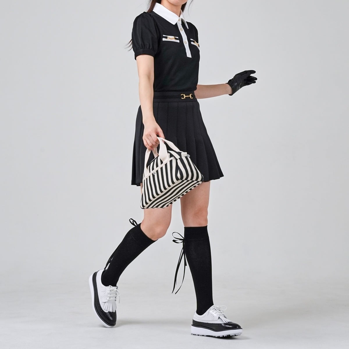 クラシックで上品な「ビット(馬具)モチーフ」をあしらった、ラグジュアリーなゴルフセットアップです。