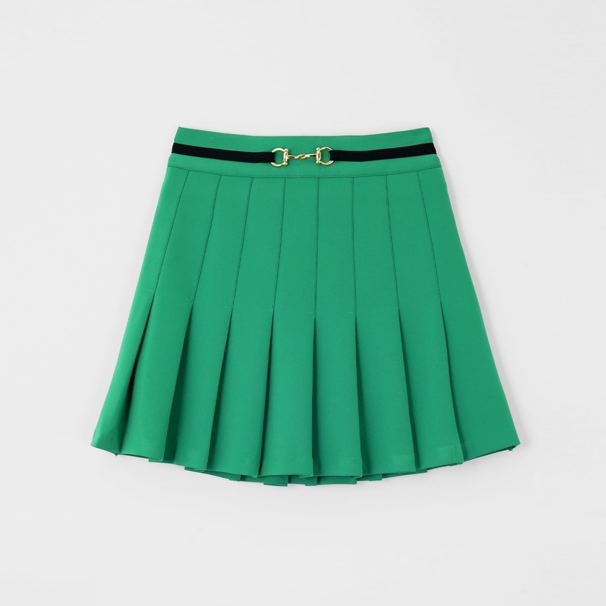 スカートはウエストのビットベルトデザインがアクセントになり、インスタイルにすることで驚くほどの脚長効果を発揮します。