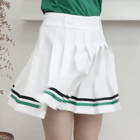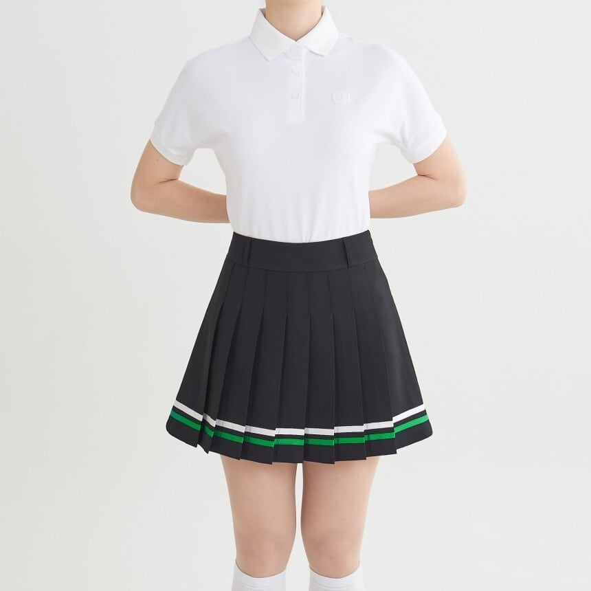 裾の配色ラインがアクセントになった、爽やかでスポーティーな印象のプリーツゴルフスカート。