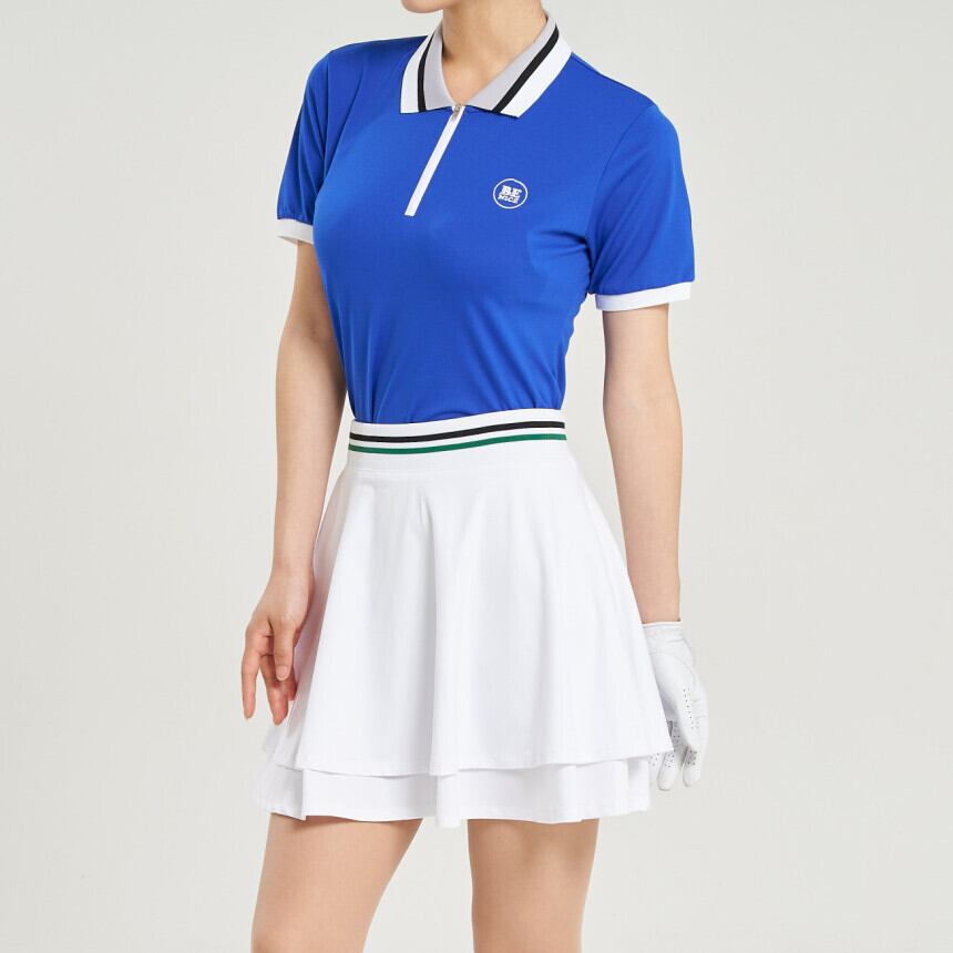吸湿乾汗効果のあるハーフジップクール半袖ポロシャツ。