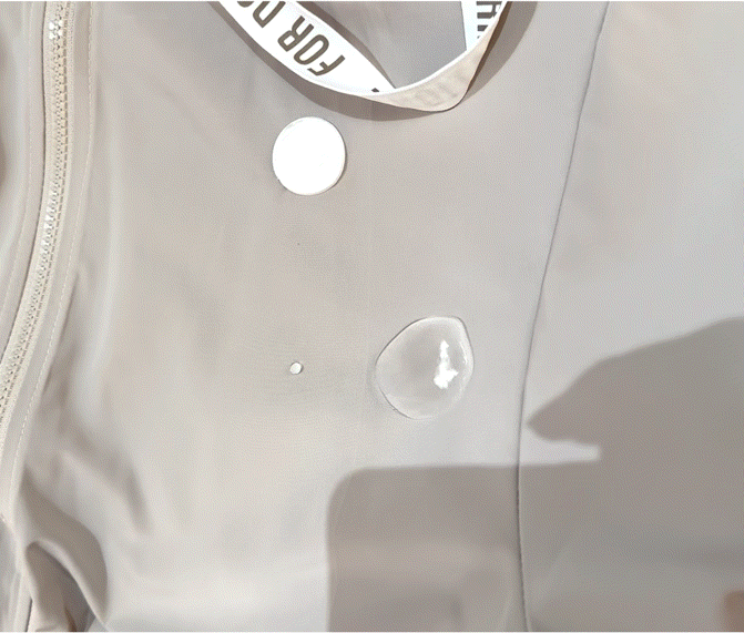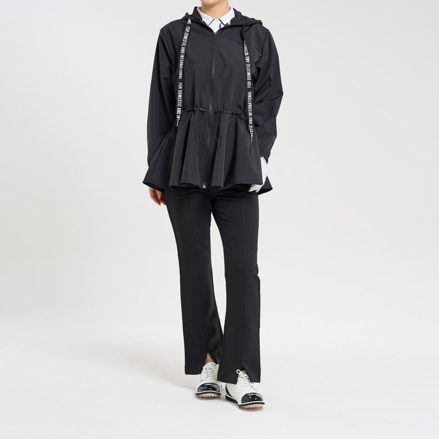 シワになりにくい素材で、快適な着心地を提供するレタリングポイントウエスト絞りウィンドブレーカー。