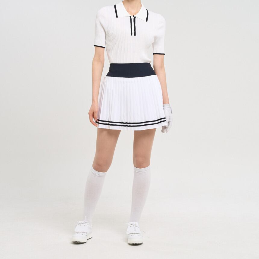 バイカラーラインリブ半袖ニットシャツ